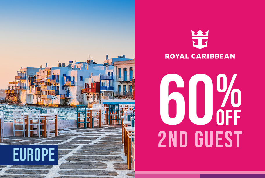 Book now with Royal Caribbean & enjoy savings up to 60% off the 2nd guest + kids pay taxes only!