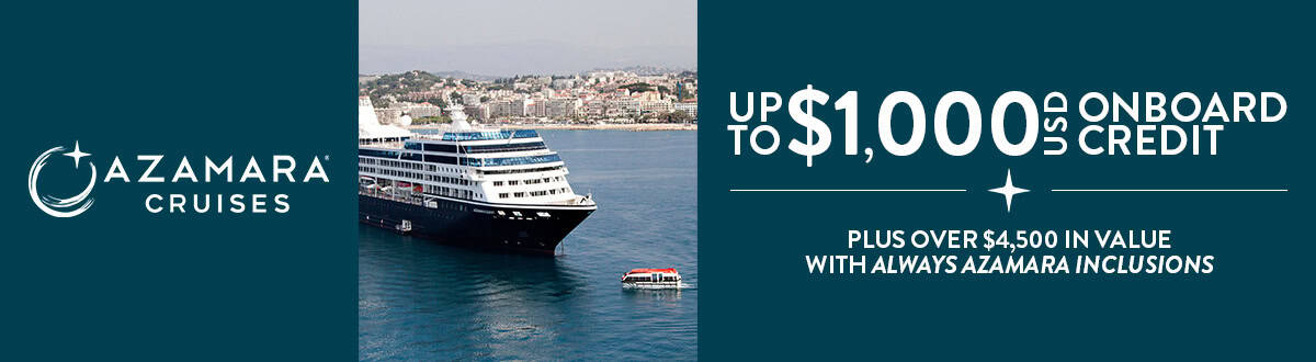 Terms & conditions: The 2026 Wave Offer (Up To $1000 USD Onboard Credit) (the “Offer”) applies to new, individual bookings in all stateroom categories (Last Minute Cruises/Voyages guarantee staterooms are excluded but lead guarantee staterooms are included) created between December 9, 2025, and March 31, 2026, (the “Offer Period”). The Offer applies to select sailings departing on or after February 3, 2026, (the “Sailing Window” or “Range”). For eligibility purposes, once a sailing is no longer within the Early Booking Bonus Promotion window (548 days or more prior to the sailing date), it will automatically transition to this Offer—provided the Offer is active and all other terms and conditions are met. Group bookings are not eligible. However, if an individual booking is created and later transferred into a group, the booking will retain the promotion. Eligible Bookings will receive up to $1000 USD Onboard Credit (OBC) per booking to be used onboard. Prior to your sail date, OBC can be used to purchase Shore Excursions. While onboard the ship, general OBC can be used to purchase shore excursions and other items such as spa services and specialty dining. Please note that some OBC can only be used for specified onboard activities. OBC has no cash value, is not redeemable for cash, is not transferable, and will expire if not used by 10pm on the last evening of the cruise. Up to $1000 Onboard Credit is tiered as follows: Cruises up to 11-nights – Interior & Oceanview | $200 Onboard Credit per stateroom, Veranda | $300 Onboard Credit per stateroom, Continent Suites | $450 Onboard Credit per stateroom, Spa Suite, Ocean Suite and World Owners Suite | $750 Onboard Credit per stateroom. Cruises of 12-nights or more – Interior & Oceanview | $300 Onboard Credit per stateroom, Veranda | $400 Onboard Credit per stateroom, Continent Suites | $500 Onboard Credit per stateroom, Spa Suite, Ocean Suite and World Owners Suite | $1000 Onboard Credit per stateroom. All guests must be named, and a full deposit must be made prior to the end of the Offer Period. The Offer is combinable with applicable Travel Partner promotions, Back-to-Back Benefits, onboard booking savings, Azamara Circle Quarterly Savings, and certain Net Rates. Unless stated otherwise, the Offer is not combinable with any other offer or promotion, including, but not limited to, Group Enhanced Pricing, Certain net rates (including but not limited to CUGs, ENETTs, Deep Nets, and GG), Last Minute Cruises/Voyages, Closed User Rates, Employee Rates, Interline Rates, Travel Agent Rates, World Cruises and Grand Voyages. The Offer is not applicable to 3rd and 4th guests in a stateroom or applicable to incentive or contracted groups. After the Offer Period, the offer will be removed from the booking if the guest cancels and reinstates the booking, applies a fare change, or changes the ship or sail date of the booking; certain other changes to the booking may also result in removal of the offer. The Offer is subject to availability and may be withdrawn or changed without notice. Void where prohibited. Prices and offers are subject to availability and change without notice, capacity control, and may be withdrawn at any time. Single occupancy guests paying 200% cruise fare are eligible for the full amount of the offer; single occupancy guests paying less than 200% cruise fare are eligible for a prorated amount of the offer. Azamara Cruises reserves the right to correct any errors, inaccuracies, or omissions and to change or update fares, fees, and surcharges at any time without prior notice. Bookings created prior to this promotion that wish to access the new benefits will have to cancel existing booking & make a new booking. Bookings that are cancelled shall be subject to prevailing cancellation charges. Promoter (i.e., Azamara Cruises) reserves the right to cancel, suspend and/or modify this promotion, or any part of it, if any fraud, technical failures, a change in applicable law or any other factor beyond Promoter’s reasonable control impairs the integrity or proper functioning of this promotion, as determined by Promoter in its sole discretion. Open for purchases made in Australia and New Zealand.