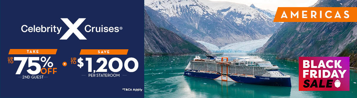 Up to $1200 Savings Offer applies to new, individual bookings at standard and prevailing or closed group standard or GroupX rates from 21/11/25 to 26/11/25 on an Offer Cruise, excluding Celebrity River cruise and Galapagos, and provides cruise fare savings per stateroom varying by stateroom category and length of voyage booked: 3 to 5 nights, savings of $150 AUD for inside and ocean view, $300 AUD for verandas, Concierge Class, AquaClass and $600 AUD for Suites; 6 nights or longer, savings of $300 AUD for inside and ocean view, $600 AUD for verandas, Concierge Class, AquaClass and $1200 AUD for Suites.