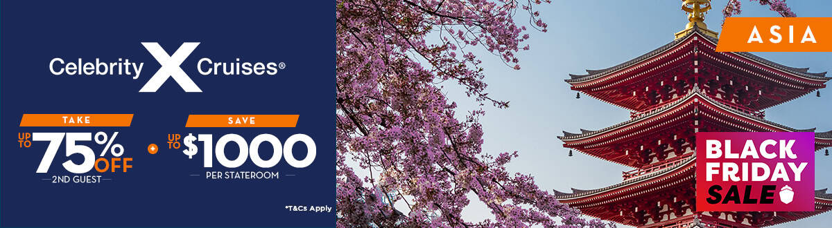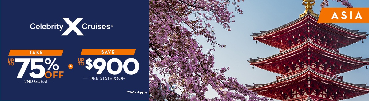 Celebrity – 75% Off 2nd Guest – Asia Cruises
