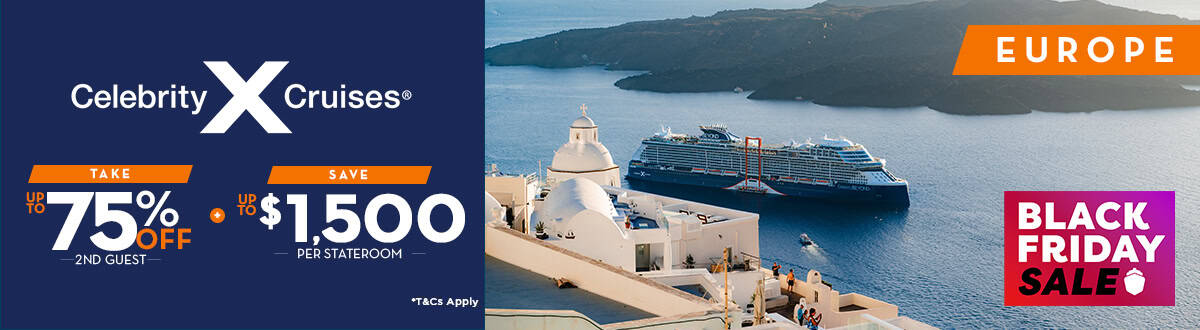 Up to $1500 Savings Offer applies to new, individual bookings at standard and prevailing or closed group standard or GroupX rates from 27/11/25 to 02/12/25 on an Offer Cruise, excluding Celebrity River cruise and Galapagos, and provides cruise fare savings per stateroom varying by stateroom category and length of voyage booked: 3 to 5 nights, savings of $300 AUD for inside and ocean view, $400 AUD for verandas, Concierge Class, AquaClass and $750 AUD for Suites; 6 nights or longer, savings of $400 AUD for inside and ocean view, $700 AUD for verandas, Concierge Class, AquaClass and $1500 AUD for Suites