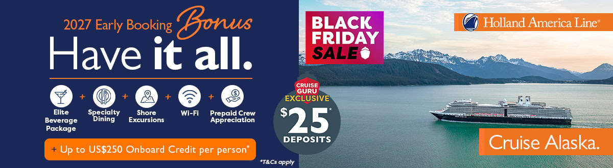 Cruise Guru Exclusive: $25 per person deposit for cruises departing after 28 April 2026.
