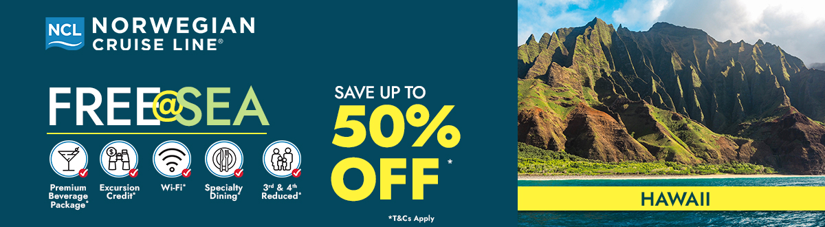Jump onboard one of the only cruise lines to cruise Hawaiian’s pristine tropical islands ALL YEAR ROUND! This 7 night cruise will visit Kauai, the island of Hawai’i (loving known as the big island) and will also overnight in blissful Maui! The itinerary may be beautiful but the offers are just as stunning!