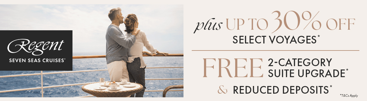 LOW 7.5% DEPOSIT** Low 7.5% Deposit is not applicable to Seven Seas Prestige Inaugural Sailings, bookings made in Brazil Real (BRL), Regent Suite guests or guests booked on voyages with 50+ nights (Grand Voyages & World Cruises).