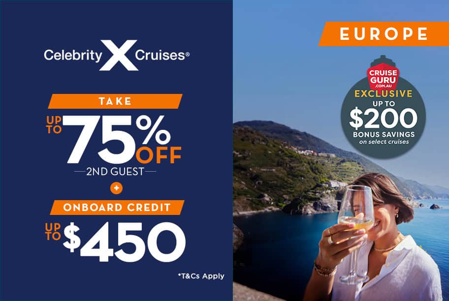 Cruise Guru has on offer a plethora of fantastic Celebrity cruise deals that sail throughout the year. With exclusive rates, remarkable packages, and essential inclusions, it’s easy to see why we have become the go-to spot for booking Celebrity Cruises in Australia. To view all the current Celebrity Cruises promotions we have on offer, simply click the ‘Promotions’ tab. You can then load the sailings related to that Celebrity cruise deal there or click back to the ‘Cruises’ tab. We also have an extensive number of cruise deals with other cruise lines available as well. Whether you want Celebrity cruises from Melbourne or Celebrity cruises from Sydney, start organising your next dream holiday with Cruise Guru!