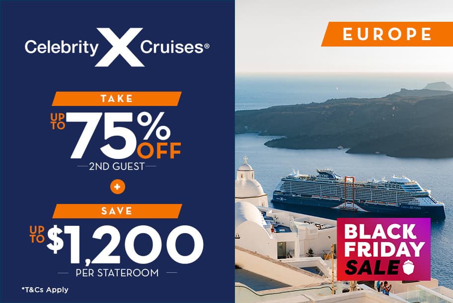 For a limited time on select Europe Celebrity cruises save up to 75% off 2nd Guest + Up to $1,200 savings!