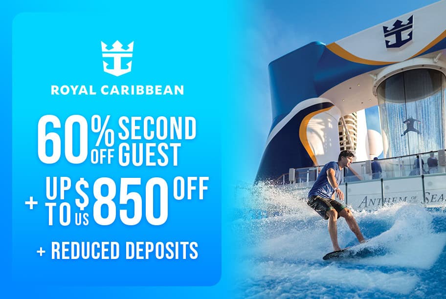Book now with Royal Caribbean & enjoy savings up to 60% off the 2nd guest + Up to $850 Off*