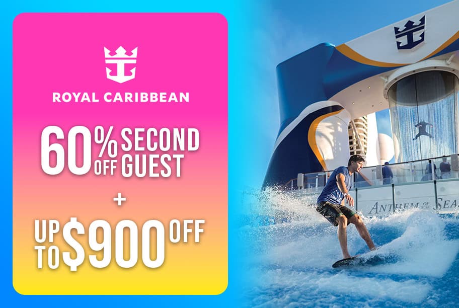 Book now with Royal Caribbean & enjoy savings up to 60% off the 2nd guest + Up to $900 Off*