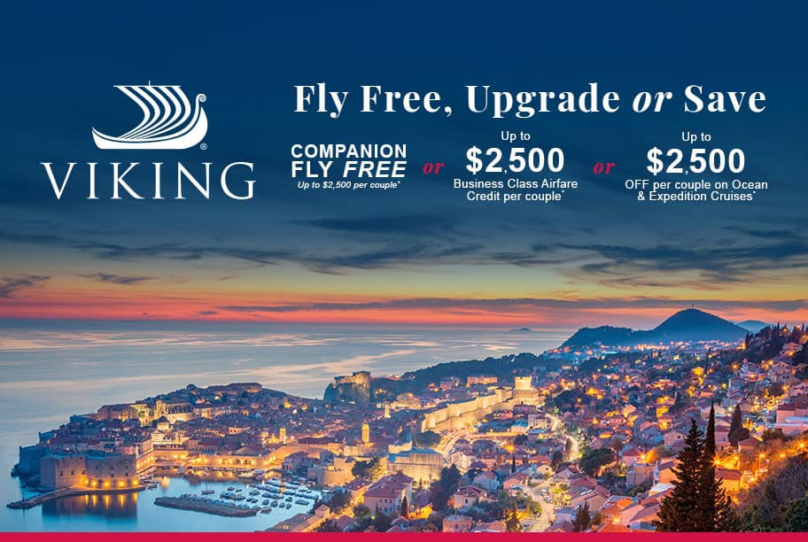 Choose from free flights, business upgrades or up to $2500 off per couple* with Viking